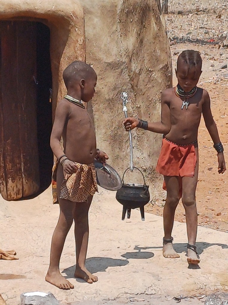 Our first night is spent in Otjiwarongo – a staging-post town about 250km north of Windhoek – with a very enjoyable group meal at the Out of Africa Town Lodge. Next morning we are on the road early continuing north and stopping off for a couple of hours at a traditional Himba village. The Himba are a small group of semi-nomadic people living a very traditional existence. They number about 50,000 in Namibia and a few more in Southern Angola and surprisingly are a growing community. It was fascinating to see and talk to them through a local interpreter.