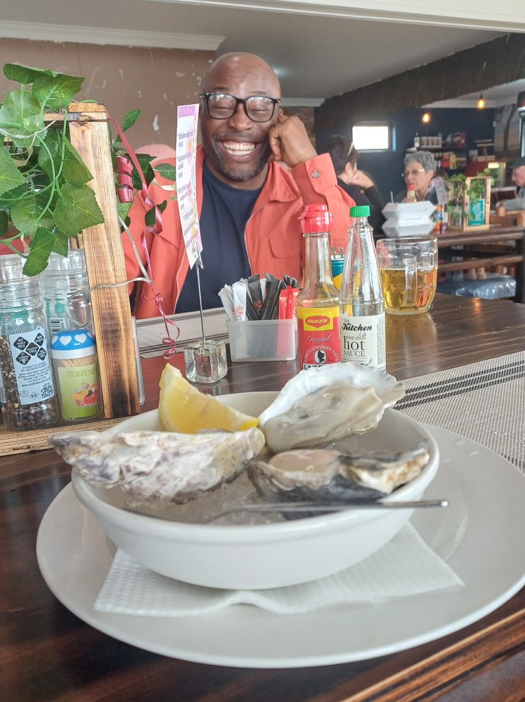 We stop for lunch in the town of Henties Bay. We find a great truck stop style café (Jakkalsputz Cafe Bar) that has amazing food. Dmeyer from our group reckons we have stumbled on the best oysters on the planet. Turns out the marine waters off Namibia are actually some of the richest in the world as a result of the Benguela Current – a cold-water nutrient-rich current coming up from the south.