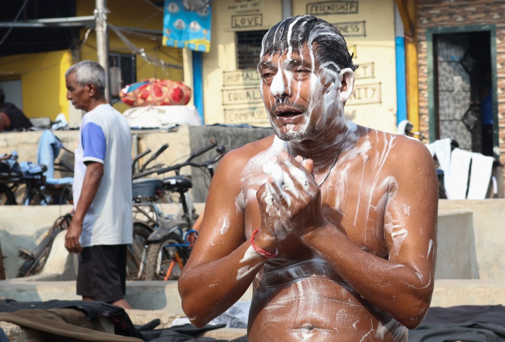 The next location was the Dhobi Ghat – aka open-air laundry – that serves Colaba. What a place this is! Huge communal washing tubs, with jeans, sheets and humans all in the mix. Two young lads gave us a tour around for a few rupees, which includes tackling some steep ladders up to the rooftop drying areas.