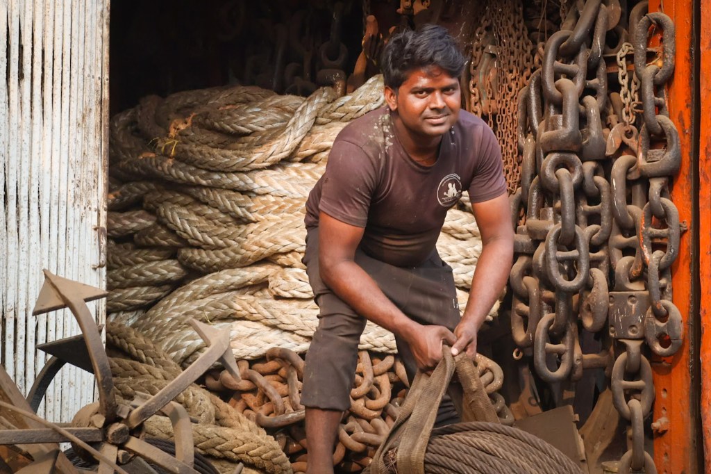 In the afternoon we go the Darukhana suburb and in particular the ship breaking neighbourhood that has built up around the Darukhana dock. There is some seriously hazardous work going on. I heard that a lot of the big shipbreaking contracts have now gone to Bangladesh, but there is still plenty of activity round here and a very tightly knit community.